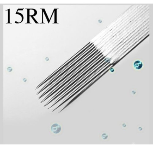 Cтерильные иглы в индивидуальной вакуумной упаковке. Round Magnum (RM) раунд магнум - иглы в плоской напайке имеют неодинаковую длину, короче с краев чем в середине напайки, создавая закругленную форму. Такие иглы предназначены для создания плавных и мягких переходов, мягкого нетравматичного закраса кожи. Используются для нанесения тату. В пачке 50 шт.