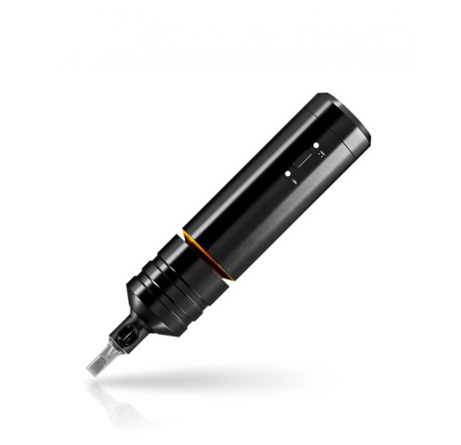 В эту беспроводную тату-машинку были интегрированы функции полного блока питания, который управляется одной кнопкой. Нажмите кнопку, чтобы включить и выключить машину. Частота регулируется быстро и интуитивно, удерживая эту кнопку нажатой при наклоне машины.