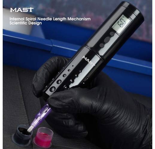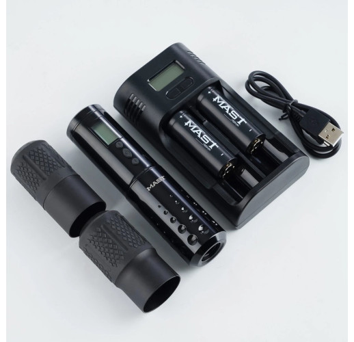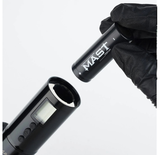 Беспроводная тату-машина Mast Lancer работает от 2-х до 3-х с одной из сменных батарей.