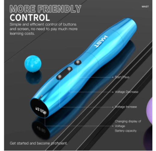 Обеспечивает полный контроль над процедурами и оснащена ходом иглы  2,5 мм, что делает ее универсальной и подходящей для всех типов кожи, сводя к минимуму травматизацию кожи клиента. Машина оснащена интерфейсом OLED-дисплея, что позволяет легко регулировать скорость и напряжение.