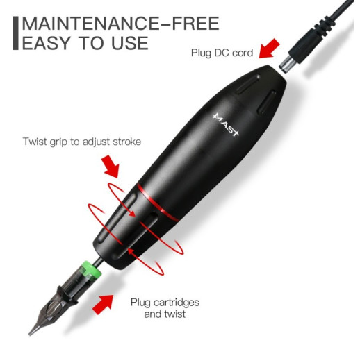 Машинка совместима со всеми популярными картриджами для тату и перманентного макияжа.
