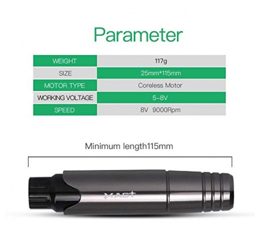 Mast P10 – це машинка для татуажу брів, повік та губ, спеціально розроблена для майстрів перманентного макіяжу у вигляді тонкої, легкої та компактної ручки.