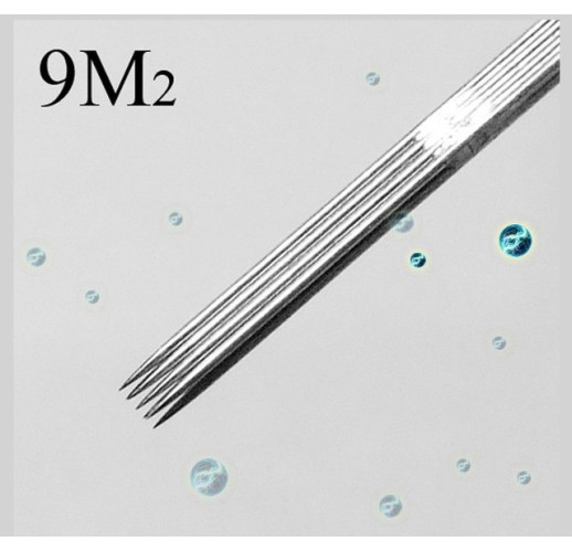 • Стерильні голки в індивідуальному вакуумному пакуванні. Magnum 2 ( M2) - (Stacked Mag) - голки Магнум 2 біля основи припаяні щільно в два ряди. Такі голки призначені для щільного забарвлення. Використовуються для нанесення тату та татуажу. У пачці 50 шт.