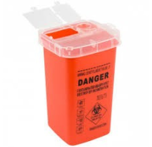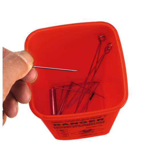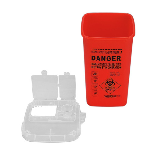 контейнер для утилізації голки червоного кольору. Висота 15,5 см, ширина 10,7 см. Має зручну кришку із спеціальними отворами, зручний у використанні. Призначений для зберігання використаних голок та подальшої їх утилізації.