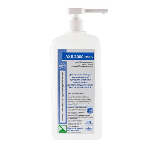 АХД 2000 гель універсальний засіб для дезінфекції шкіри та робочої поверхні.